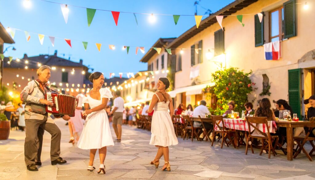 Italien ist ein Land der Feste und Bräuche. Im Frühling und Sommer ziehen Dorffeste („sagre“) durch die Orte: einfache Bänke, Lichterketten, lokale Spezialitäten vom Grill. Im Spätsommer und Herbst kommen Weinberge und Ernte ins Spiel – kleine Feste, Trauben, Kastanien, frische Öle. Im Winter leuchten Krippen und Märkte, in einigen Städten wird Karneval bunt. Für dich heißt das: egal wann du kommst, irgendwo ist Stimmung. Und alles ist so organisiert, dass du mit wenigen Schritten Teil davon wirst.